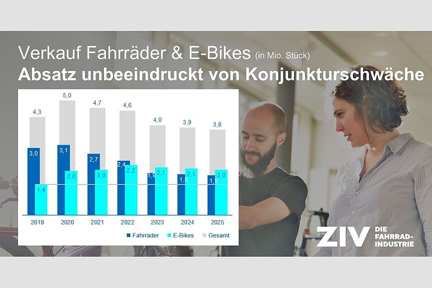 Am 11. März 2026 stellten die Verbände ZIV - Die Fahrradindustrie, Zukunft Fahrrad und der Verbund Service und Fahrrad (VSF) in einer Online-Pressekonferenz die Zahlen aus dem Fahrradmarkt zum Jahr 2025 vor.